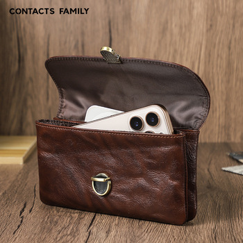 กระเป๋าใส่โทรศัพท์เข็มขัดหนังวินเทจแบบมีซิปกระเป๋าใส่โทรศัพท์มือถือหนังม้าบ้าทำด้วยมือกระเป๋าสะพายข้างสำหรับผู้ชาย